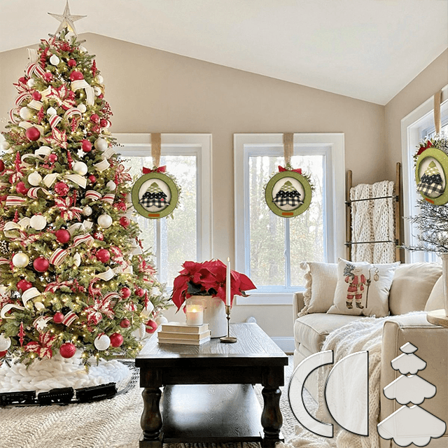 This is a wreath-style 3D tree decoration that can be hung on a wall or door. The tree is set inside a round frame, giving it a unique and charming look. It’s a space-saving, minimalist item that brings a festive Christmas atmosphere to your home.