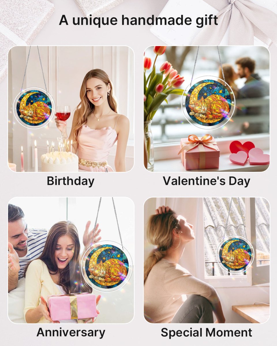 Perfect for cat lovers and puzzle enthusiasts, it combines the joy of assembly with a lasting piece of art—ideal for windows, walls, or as a thoughtful gift.