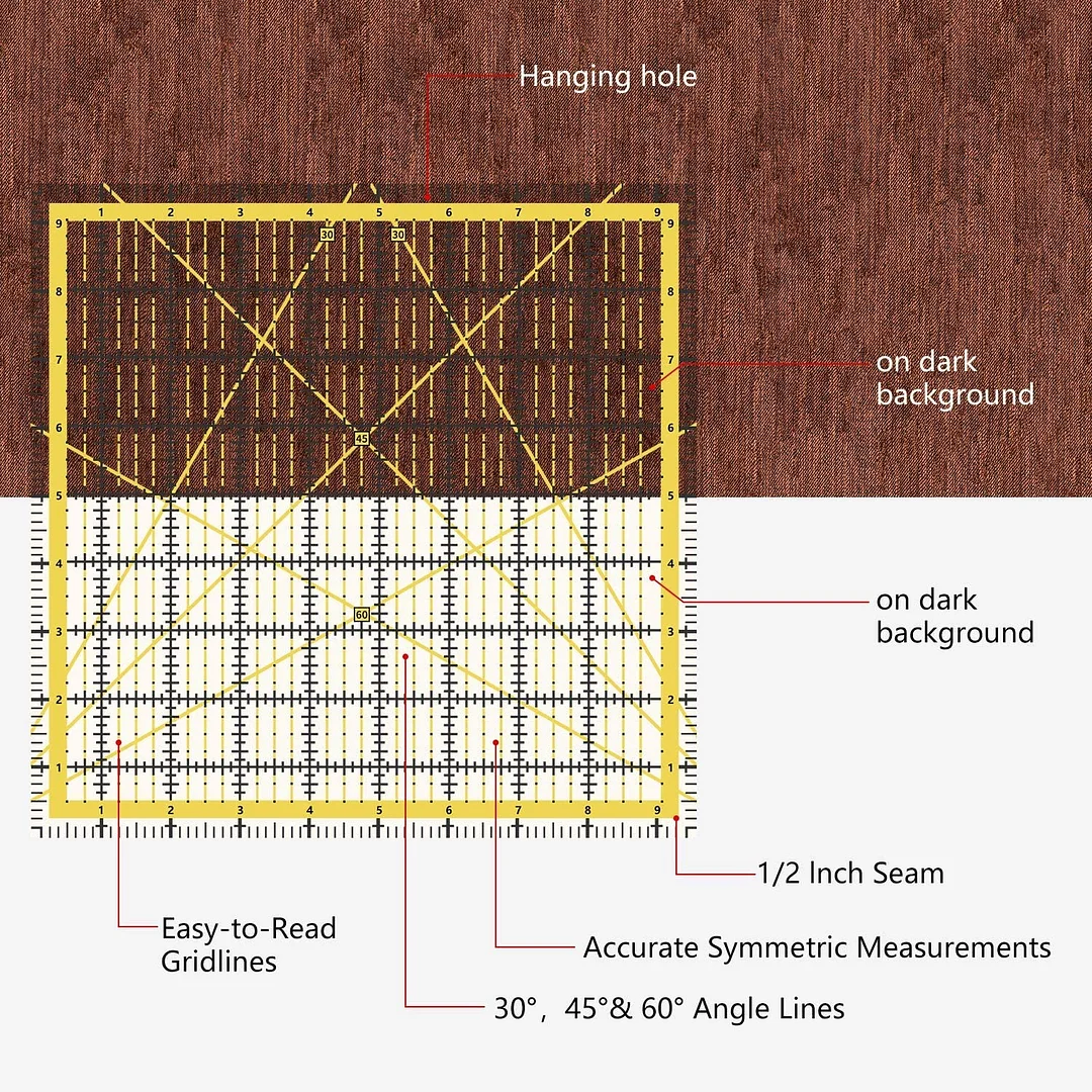 ✅ Easy to use. The ruler’s laser cut smooth edge allows for easier, deeper cutting of fabric layers. While the black and green print allows you to see the grid on dark and light fabrics alike.