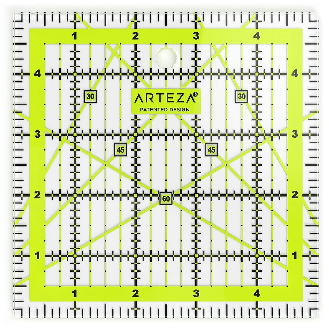 Measure, trim, or cut quilt patchworks accurately using this TrendyQuilt Patchwork Ruler. This square block gauge offers multiple angles for easy cuts and ambidextrous use to aid in all your patchwork creations. Finish your quilting projects with peace of mind knowing your patchworks are made with uniformity and precision.