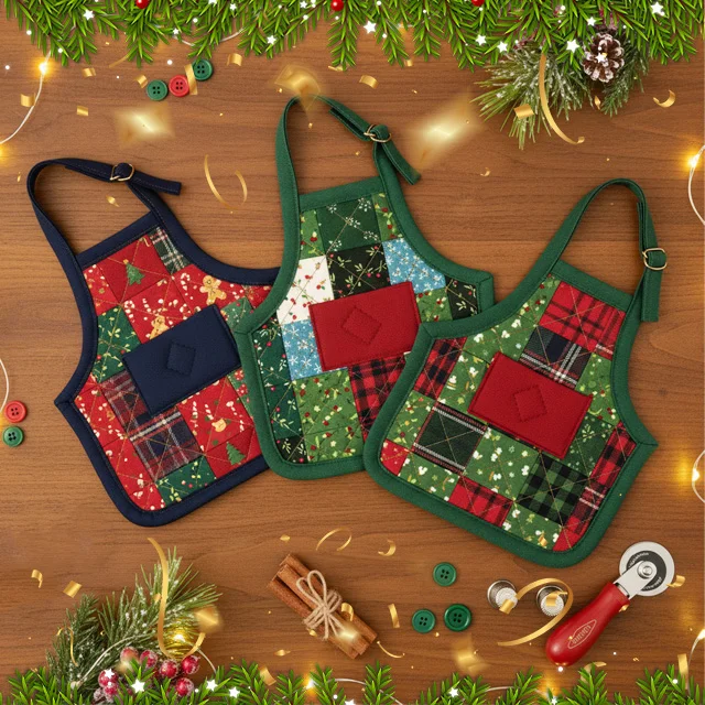 Create 8 memorable, mini treasures this holiday season with the Christmas Apron Ornaments Kit, designed by J. Minnis!