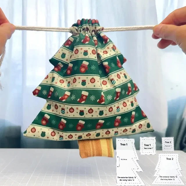 - Christmas Tree String Bag Sewing Acrylic Template - With Instructions