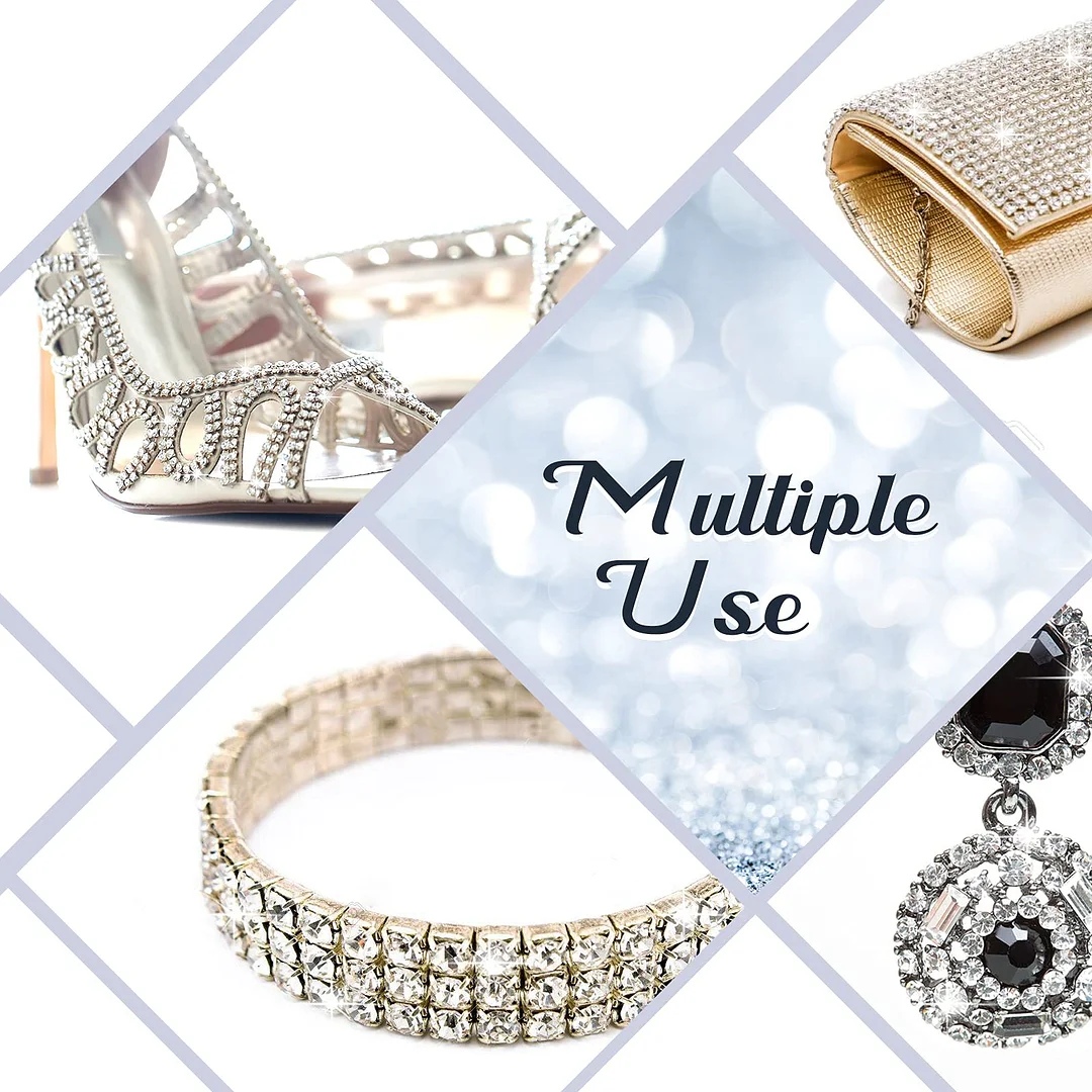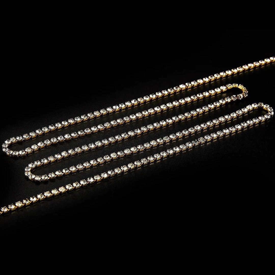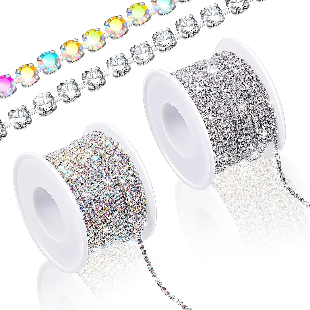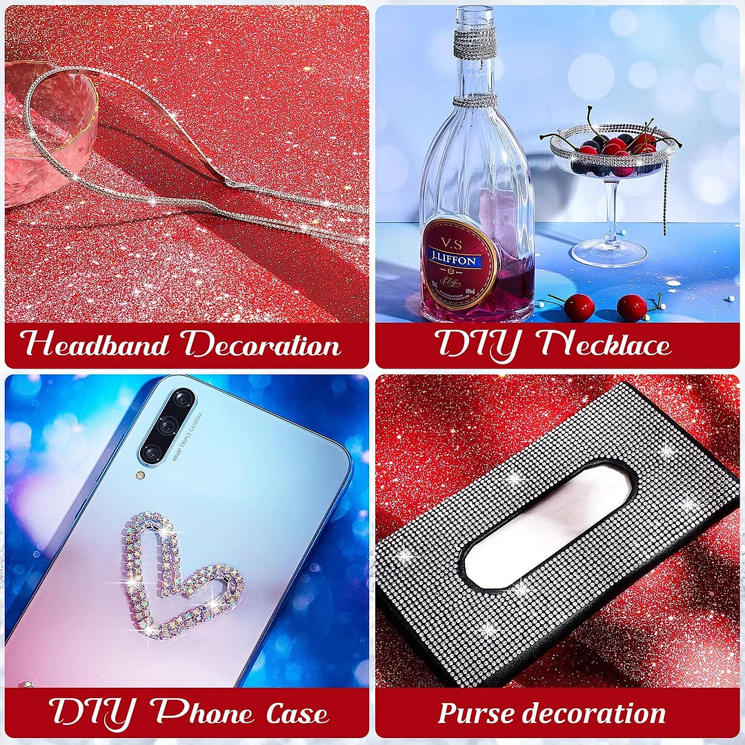 - Crystal chain trimming easy to glue onto glass, metal, wood, or sew onto ribbon, leather, or fabric; Won’t catch on other materials; Chain rhinestone roll compatible with other jewelry findings such as rhinestone cup chain ends