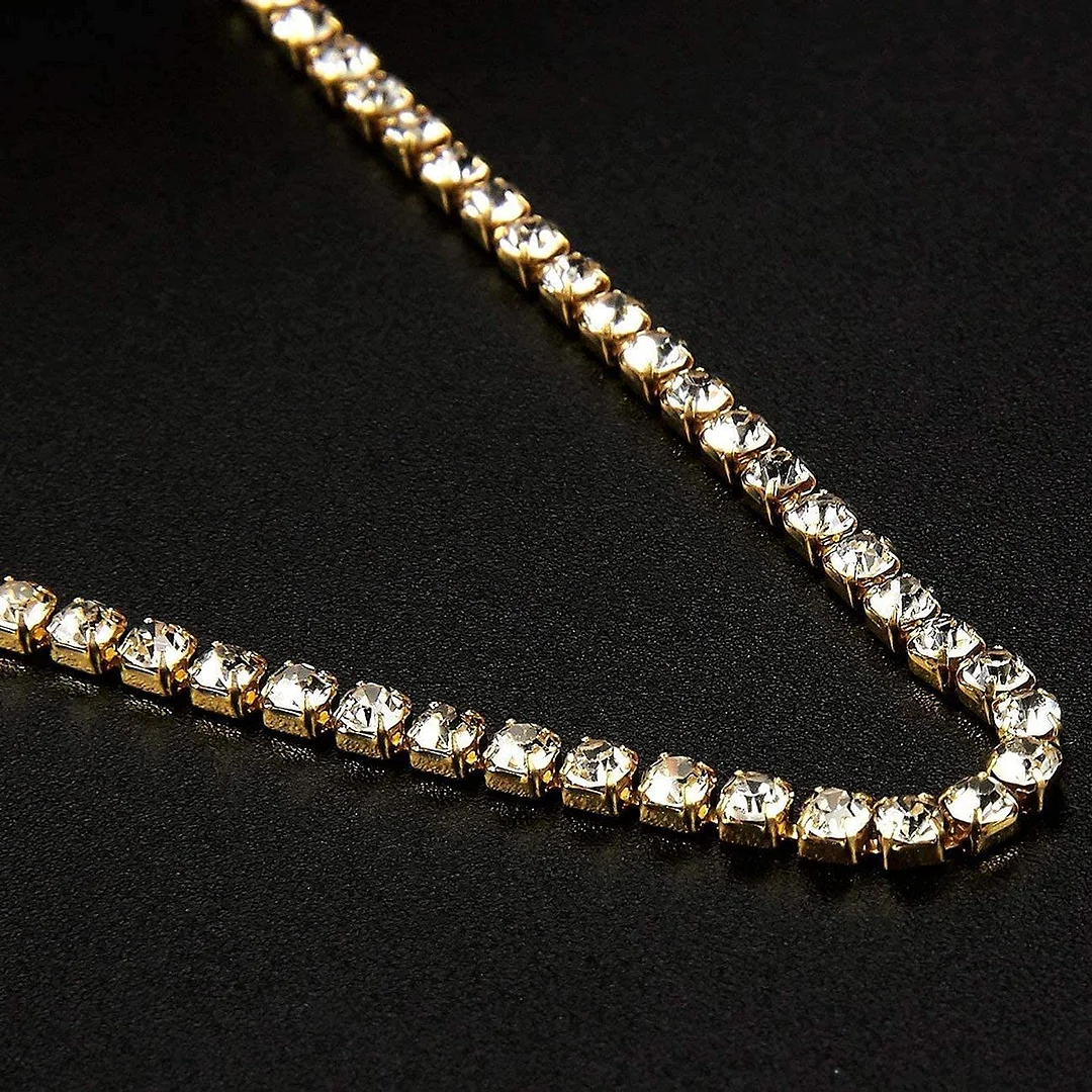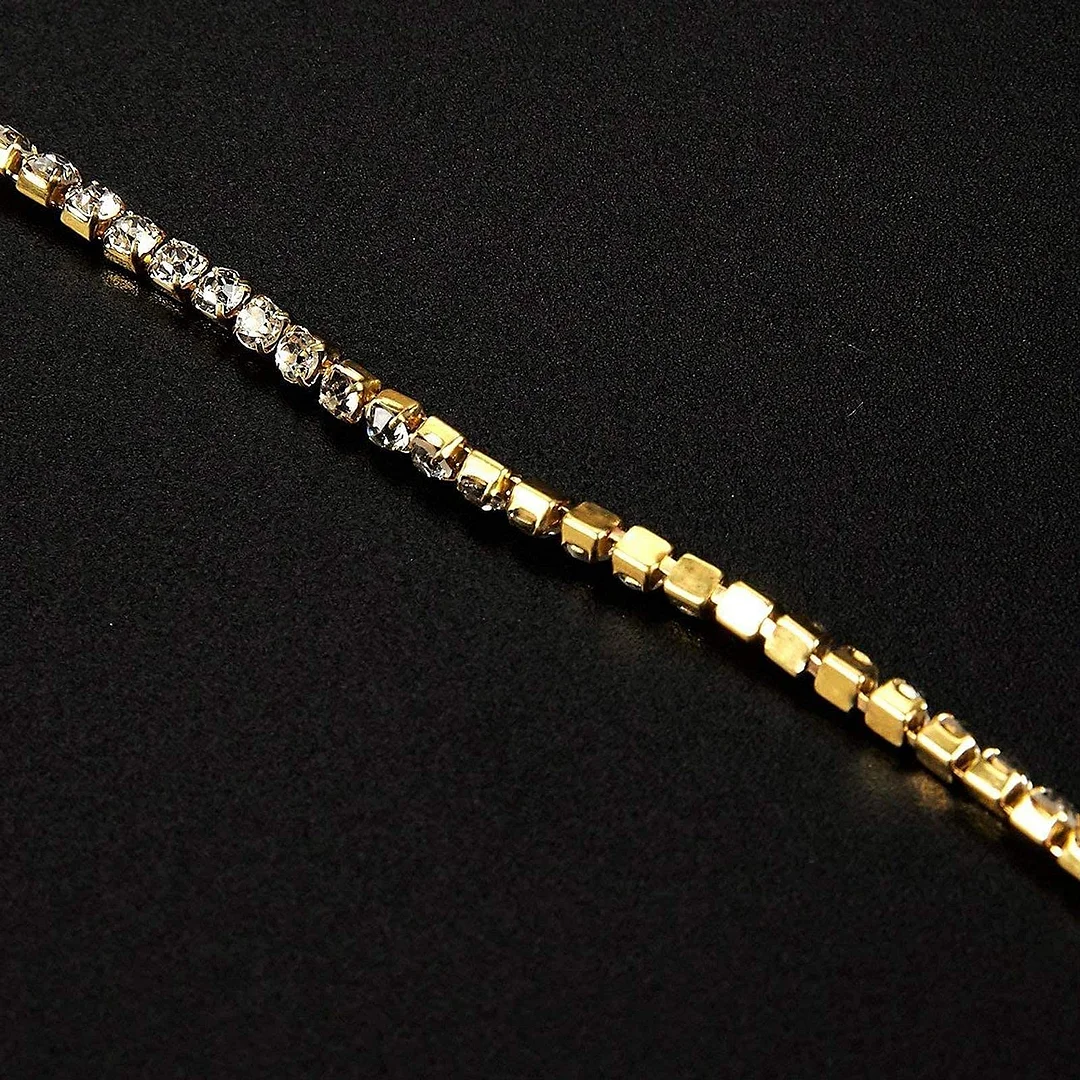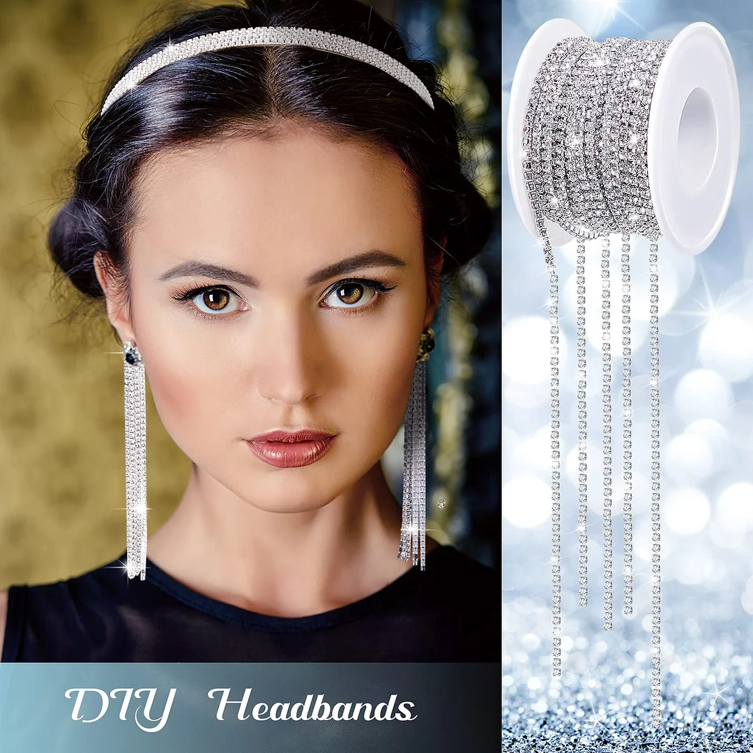 This roll of delicate yet strong rhinestones chain banding is the answer! With the crystallized rhinestone securely mounted on a metal chain with claws, the crystal on chain is made to last and will add glitz and glamour instantly to any DIY project.