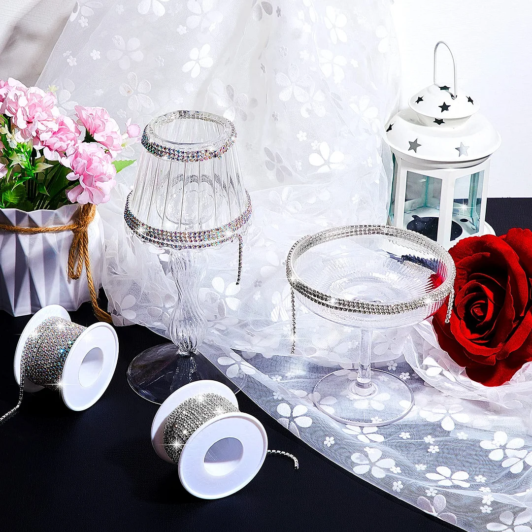 - Crystal rhinestone chain for wedding décor, accessories, party and holiday decorations; Sparkly diamond-cut crystals rhinestones chain for bridal veils, hairpins, brooches, cakes, candles, champagne flutes, and centerpieces