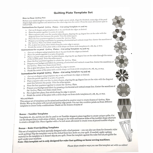 Note: This template set is only designed for ruler foot quilting on home sewing machines, not on longarm machines.