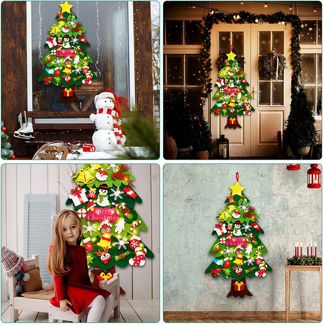 - 🎄【MULTI-PURPOSE FELT CHRISTMAS TREE SET】: This Felt Christmas tree can be decorated anywhere you want. Ideal for both Christmas Outdoor/Indoor Decorations. You can decorate it in home walls, doors, rooms, kids' parties, malls, shops, windows, porch, doors, etc.