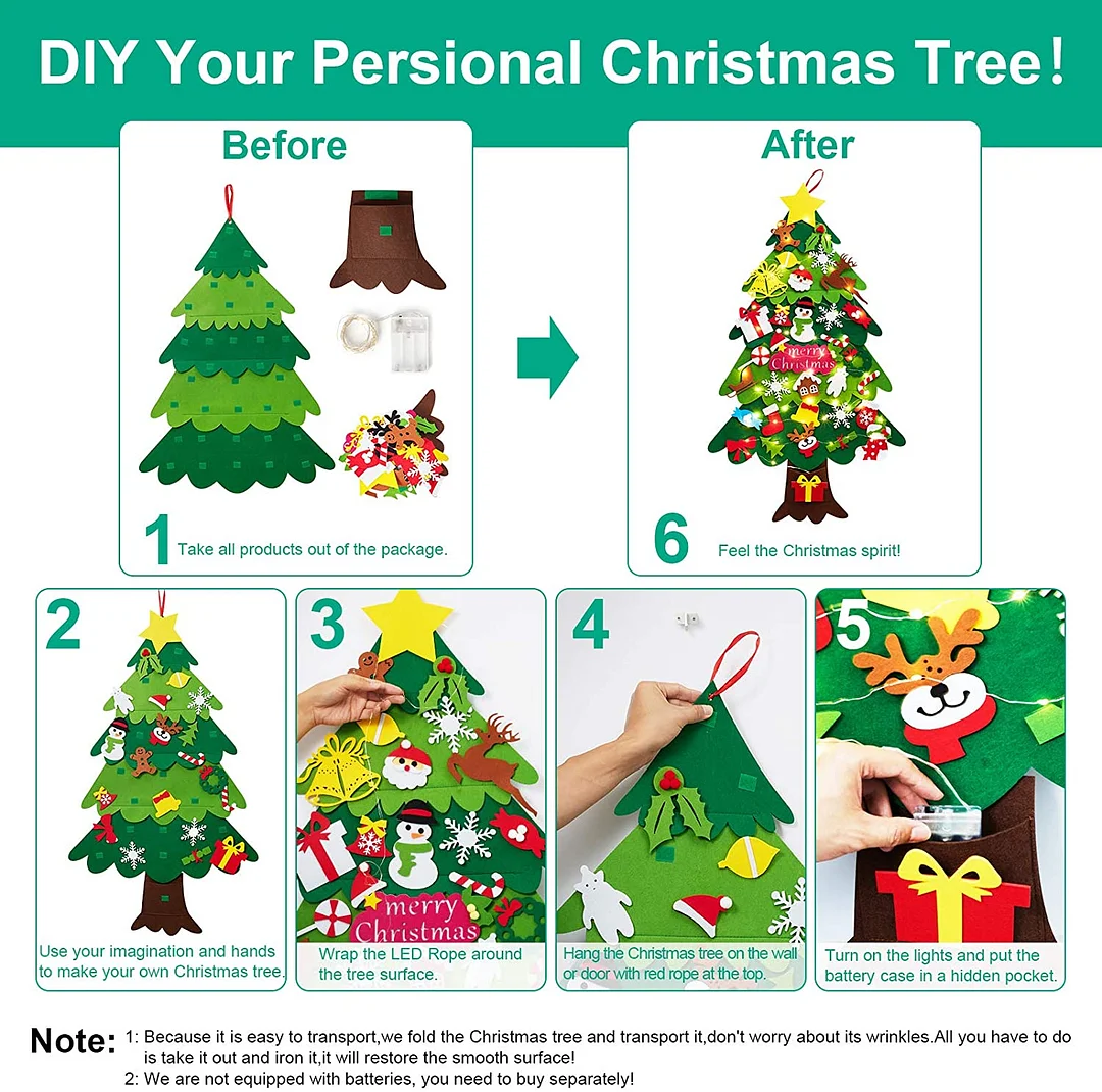 - 🎅【PERFECT CHRISTMAS/NEW YEAR GIFT FOR KIDS】: Imagine how excited kids will be when they get this Christmas felt tree! They can decorate their Christmas tree with their own imagination, giving them a feeling of satisfaction.