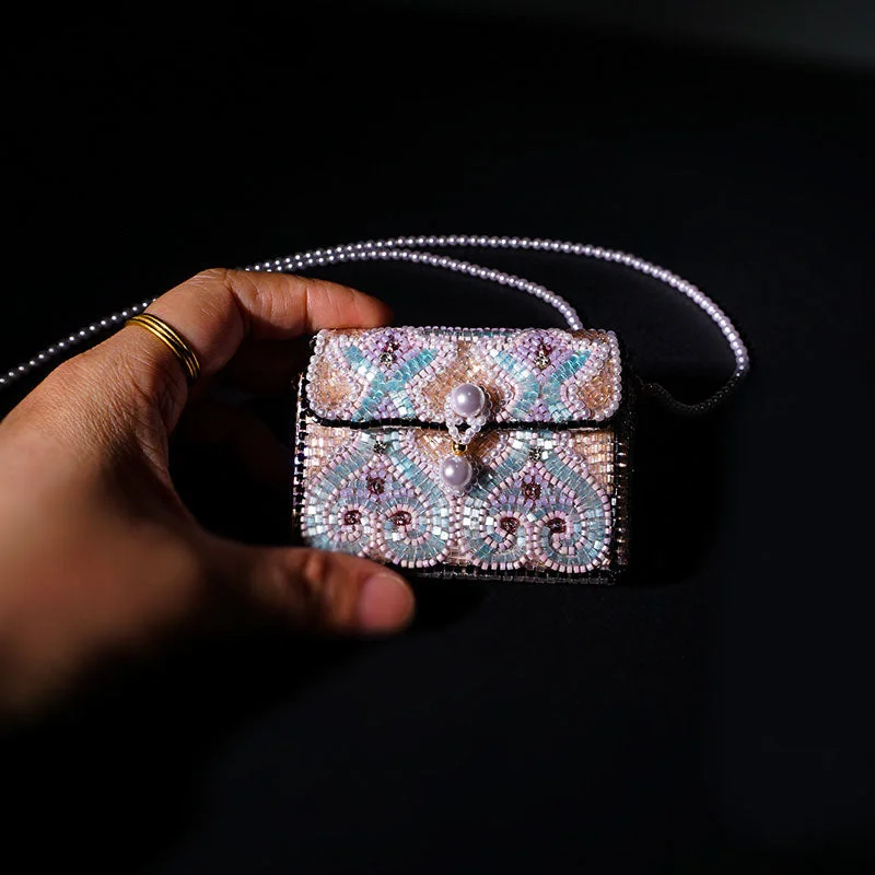 This Headphone Bag to be classy but sparkly and combining a wide range of materials from beads, sequins and rhinestone. This product is not a finished product, you need to make a Bag by yourself after purchase