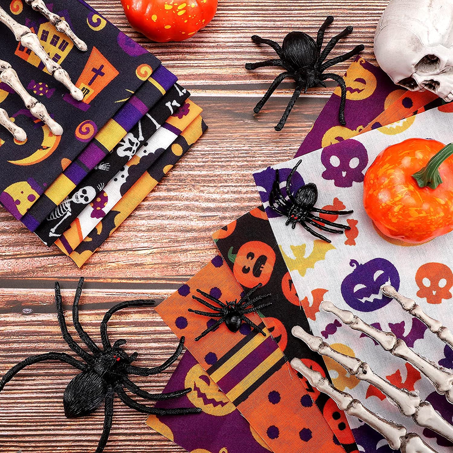 - These quilting patchworks are featured with kinds of Halloween themed elements, such as pumpkin, skull, bat, ghost, spider, as well as some classic patterns, like striped pattern, dot pattern and more, vivid and elegant.