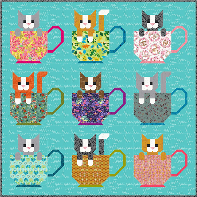 Kittens in Cups Quilt Pattern Template - With Instructions