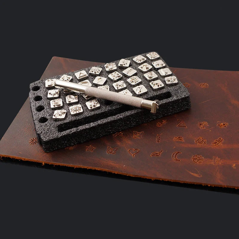 The leather stamping tools with 32pcs popular patterns for leather carving, printing patterns on the leather to make it nice and beautiful.