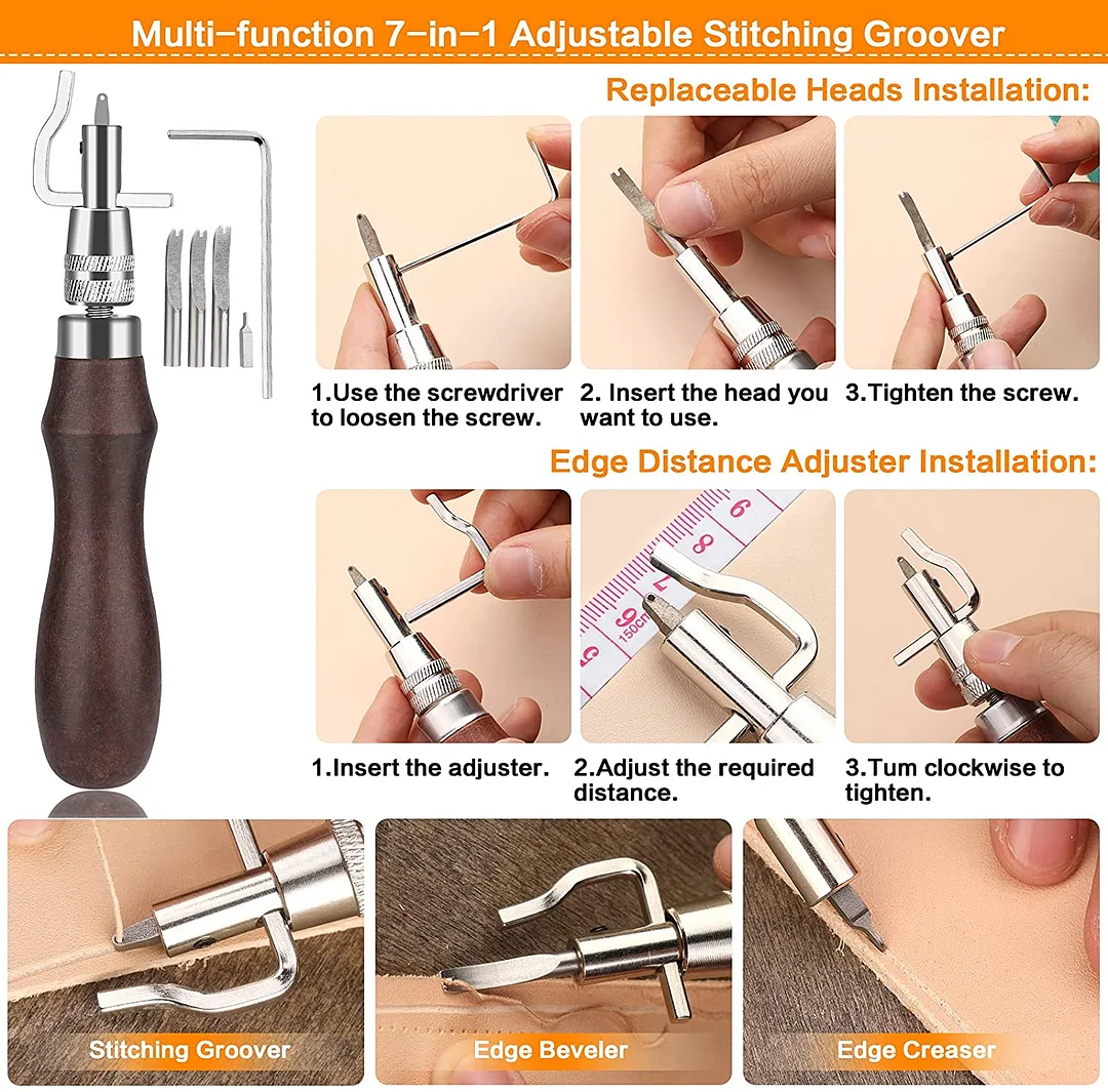 - Easy-to-adjust adjustable leather edge sewing tool can be used to score leather edges. The three-needle copper cone is suitable for sewing or repairing canvas, leather, shoes and shoe soles.