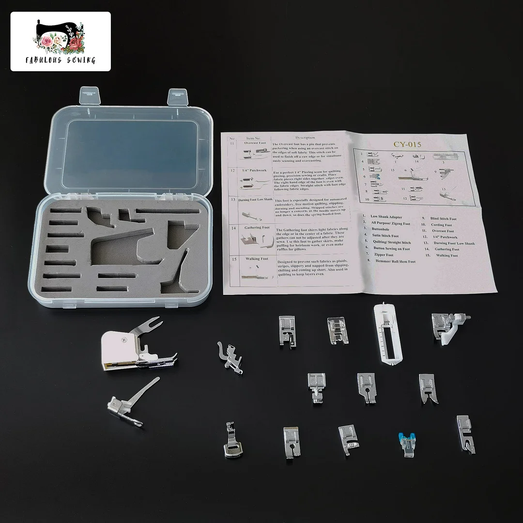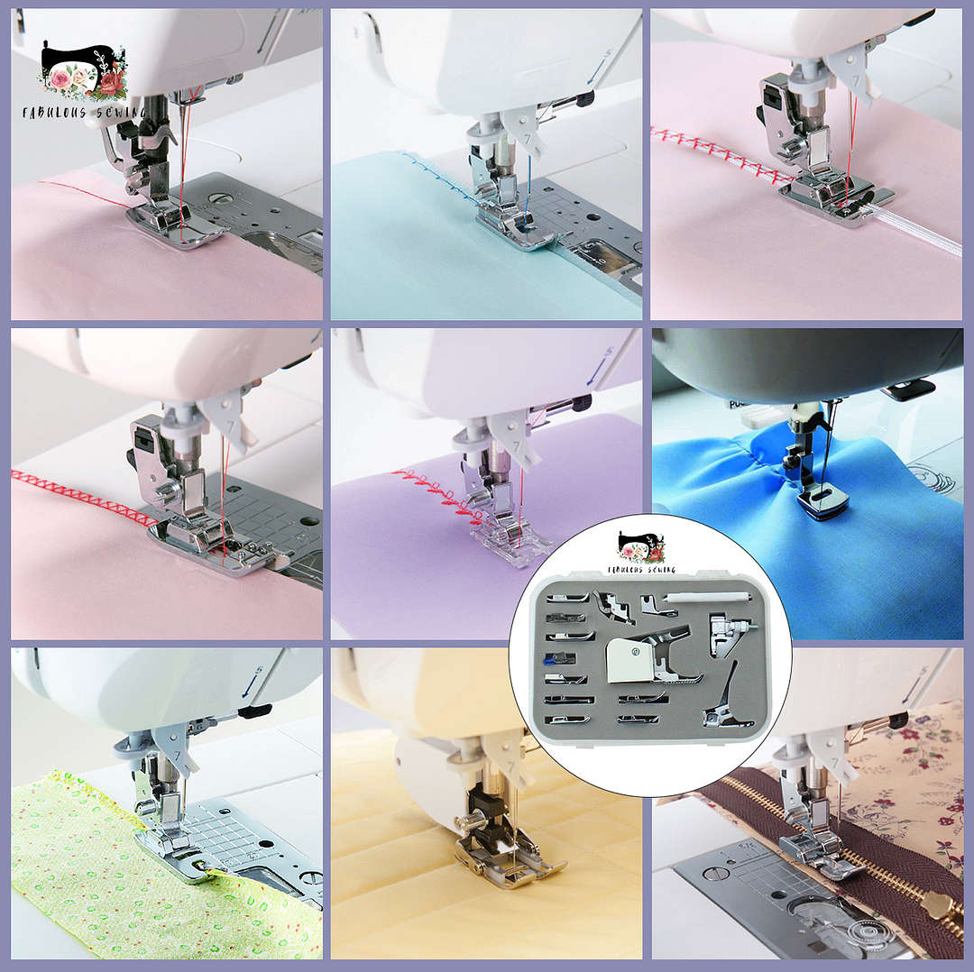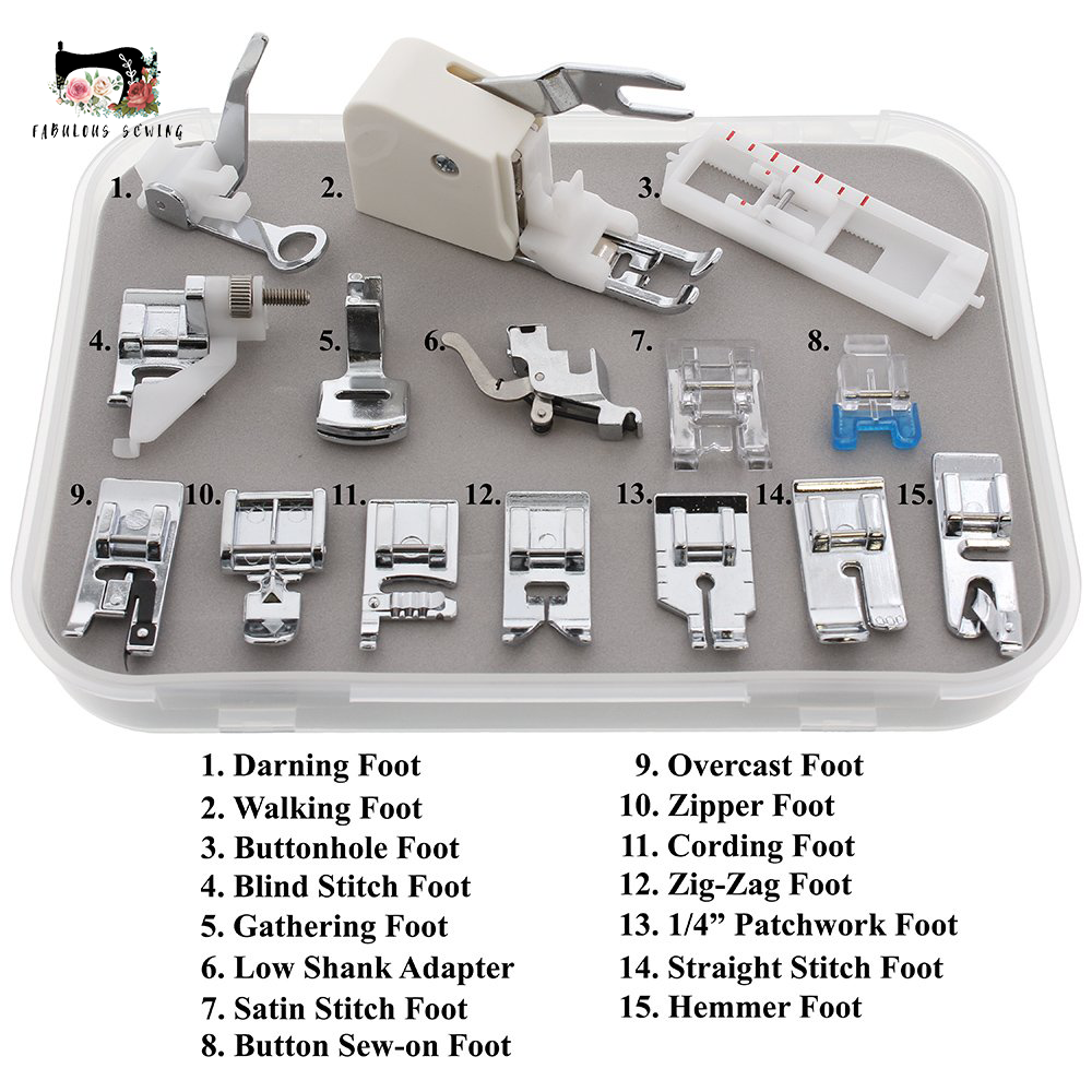 Everything You Need - This set includes 15 of the most popular presser feet that allow you to sew straight, precise lines, install zippers, and add eye-catching embellishments. Their top-quality construction ensure long-lasting durability.