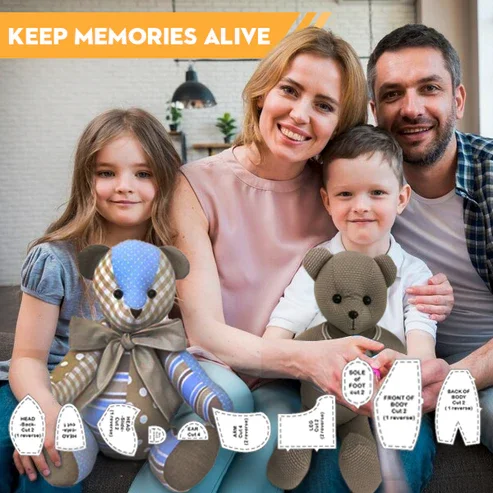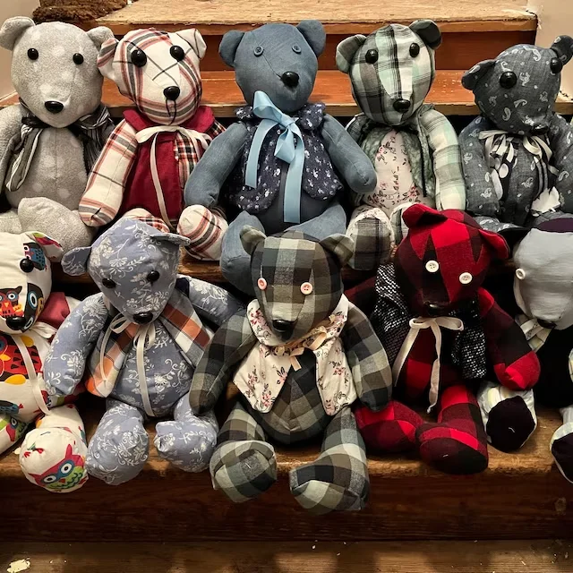 Memory Bear made from the clothing of a loved one who passed to help keep their memory alive. Can also be made from a child’s clothing to preserve their childhood memories.