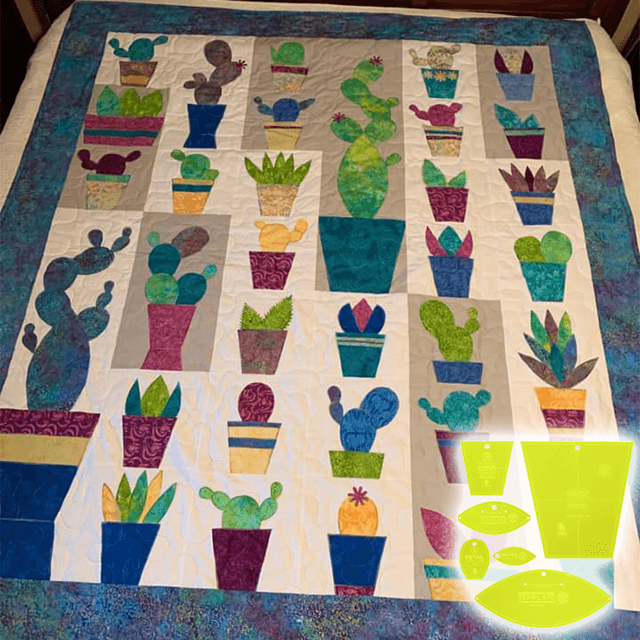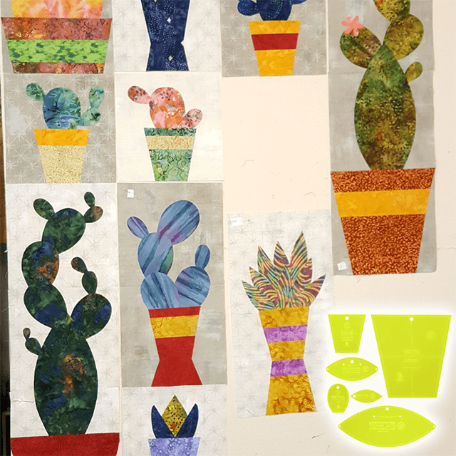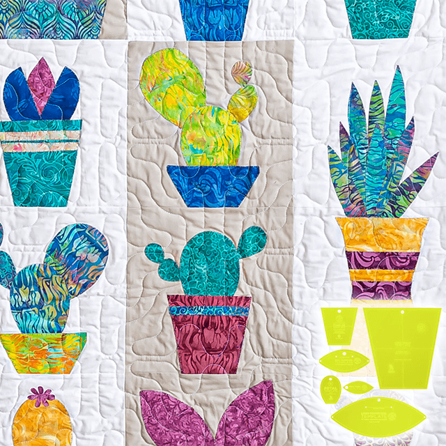 Create a smorgasbord of succulents with this fun quilting bundle! Featuring the Cactus Carnival pattern and 6 of our Missouri Star quilting templates, you'll have all the tools you need to create this whimsical cactus quilt.