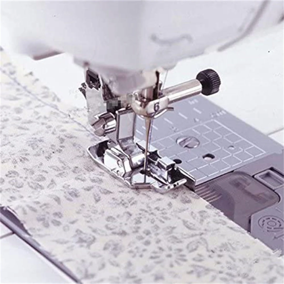 The patchwork quilting foot allows you to align the seams perfectly when sewing.