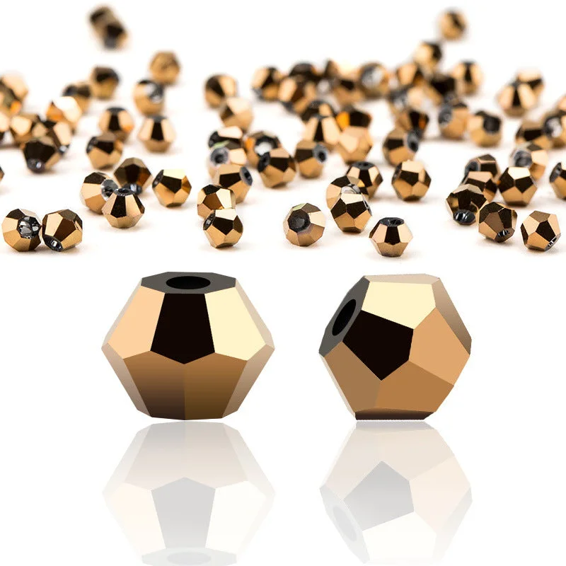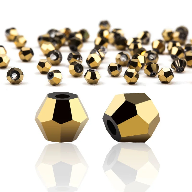 Crystals beads are made from artificial crystal craft which is cut to form multiple facets and designs. Bicone crystal beads are also called new cut beads. These crystal beads are fire-polished to give extra shine and without any sharp or pointed edges. The faces of the bead reflect a large amount of light which in turn creates a magical sparkling effect.