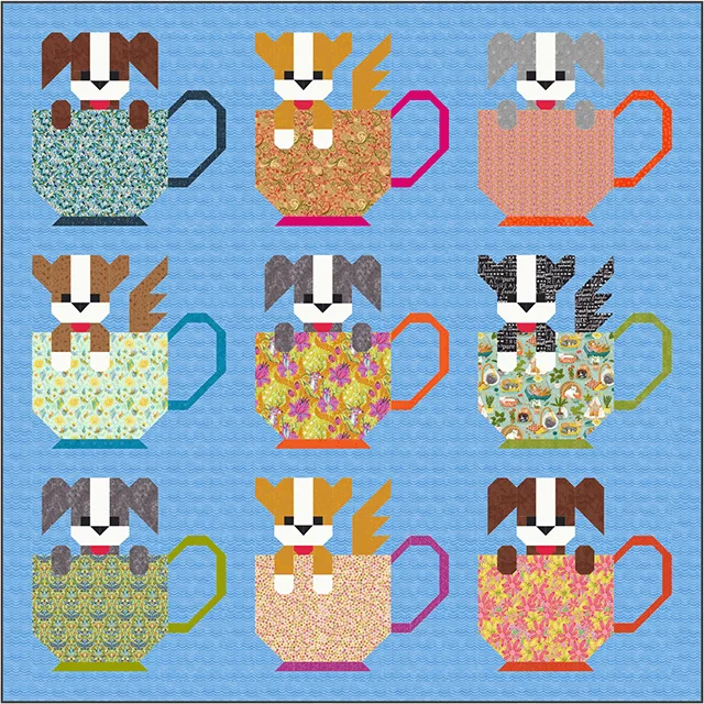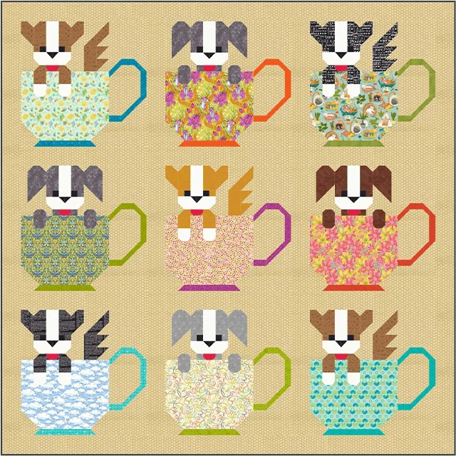 Pups in Cups Quilt Pattern Template - With Instructions