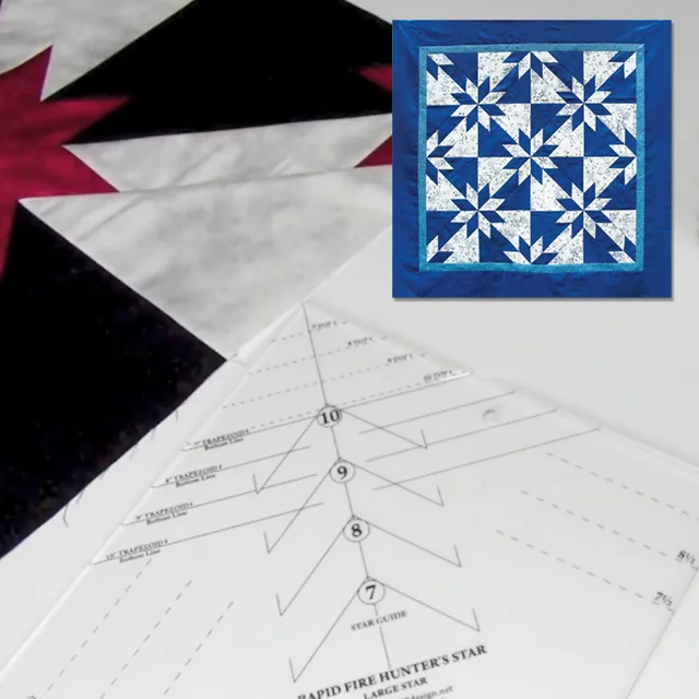 There are multiple sizes on each tool, clearly illustrated step video by step instructions, design layout options, and a "basic recipe" included to get quilters started on their first set of 16 blocks. Great Tool for making the Hunter's star Acrylic