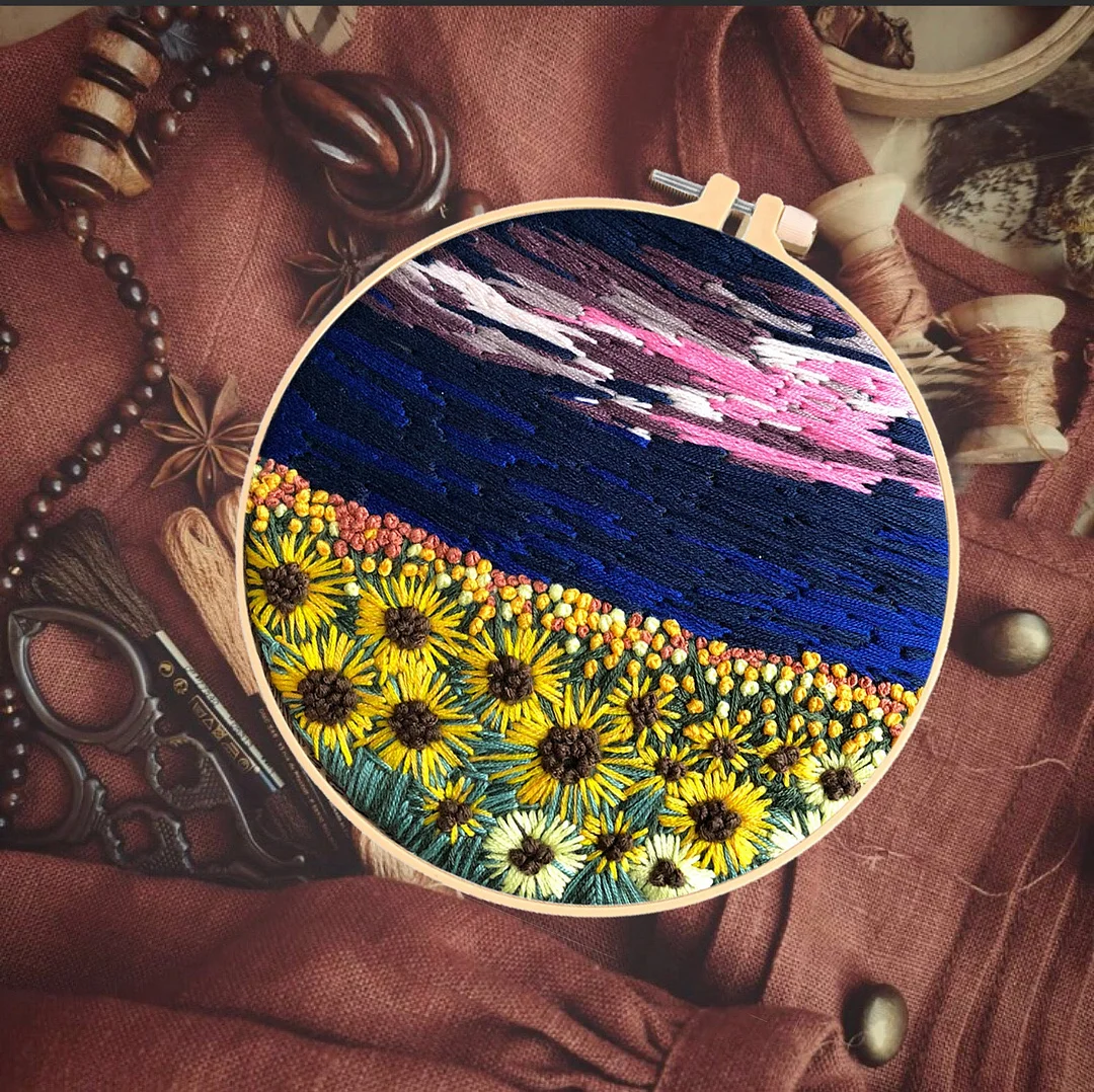 Sea Of Flowers Embroidery Kits - 1Pcs