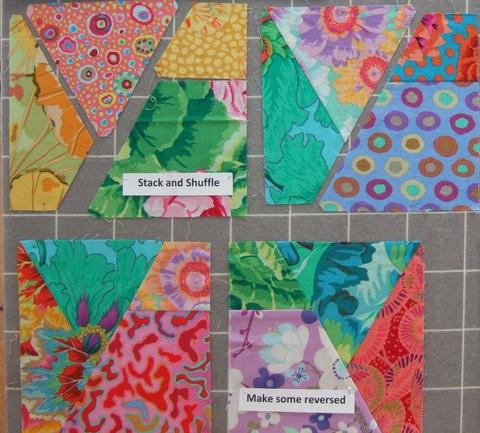 It is possible to cut all the pieces from those odd-sized scraps in storage or stacking fabrics, and cut into small pieces in multiples of ten square inches in a matter of minutes.