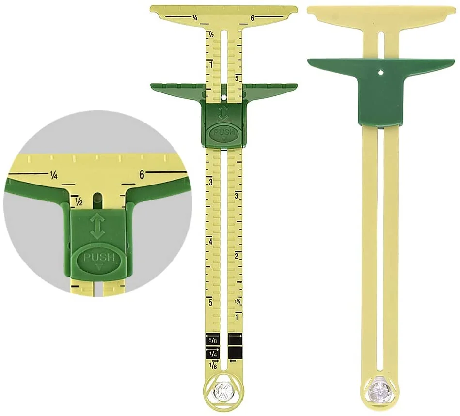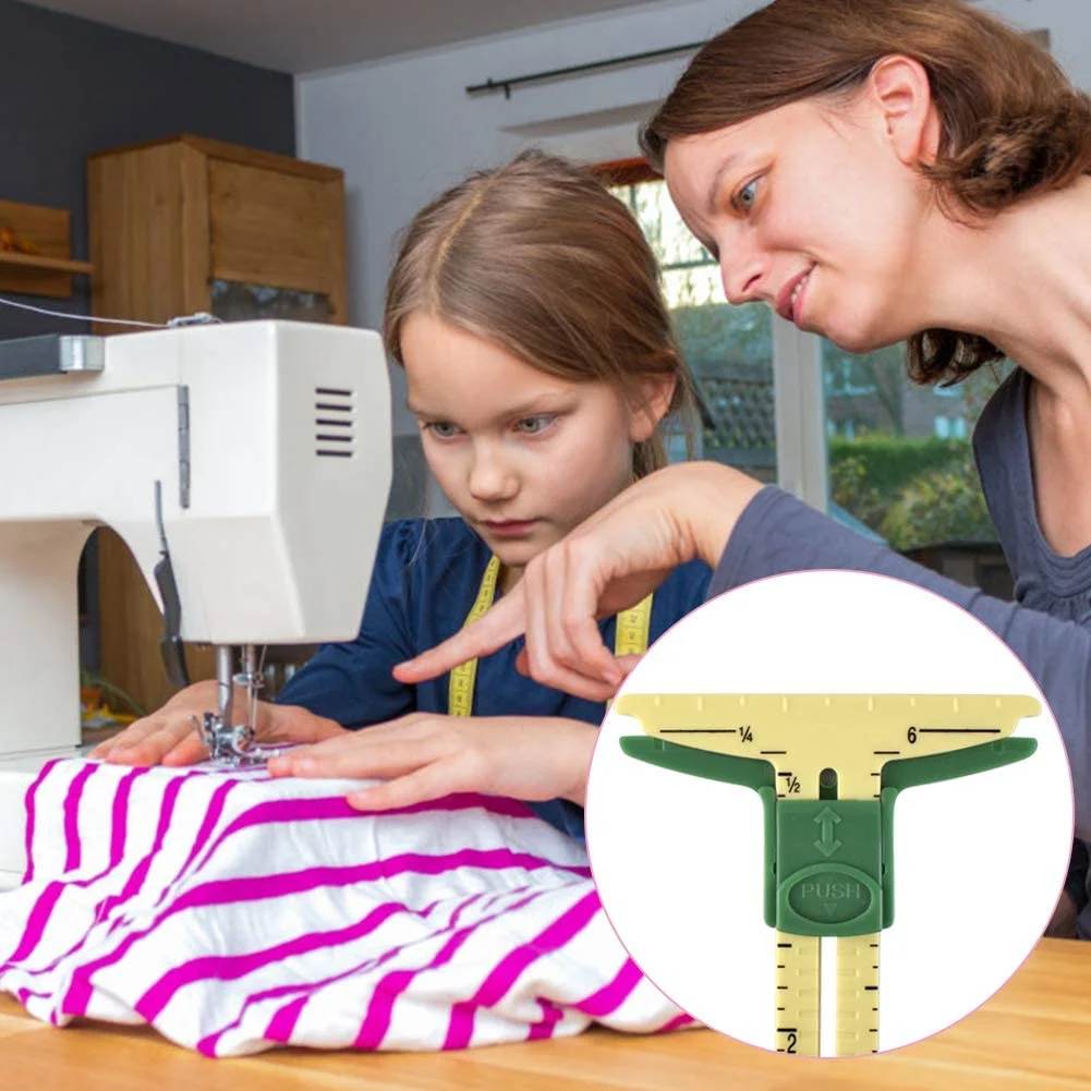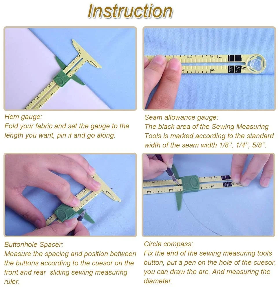 - The sliding gauge is adjustable and can be used as T gauge, hemming gauge, hemming, eyelet gasket and compass