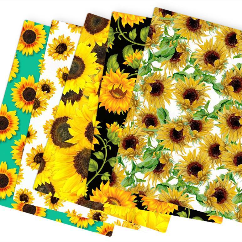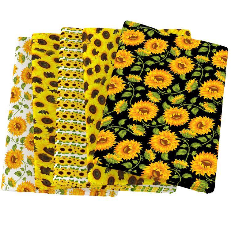 Sunflower Pattern Cotton Craft Fabric Bundle Pre-Cut Cotton Floral Sheets for Patchwork Sewing DIY Projects