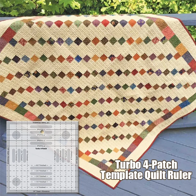 Create four-patch blocks in 16 different finished sizes from 1/2 inch to 4 inches (6 inches as an example). Place the markings on the tool directly on the seam line and trim.
